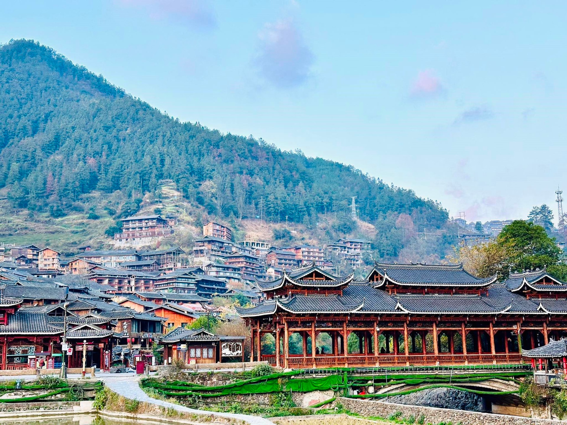 - Buổi trưa: Đoàn dùng bữa trưa, sau đó di chuyển đi Trấn Viễn Cổ Thành – Nơi đây đã có hơn 2000 năm lịch sử từ thời nhà Hán, được mệnh danh là bảo tàng văn hóa trung hoa với sự giao thoa của hơn 20 nền văn hóa dân tộc khác nhau. Đây cũng là một trong những cổ trấn đẹp nhất và lâu đời của Quý Châu với những khung cảnh cổ kính, thơ mộng bên dòng sông xanh. Quý khách sẽ tự do dạo bước trên những con phố lát đá, chiêm ngưỡng kiến trúc nhà sàn ven song Vũ Dương và tận hưởng bầu không khí yên bình của phố cổ.